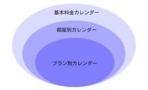 基本料金カレンダー>部屋別カレンダー>プラン別カレンダー の順に、より粒度の細かい設定ができ、