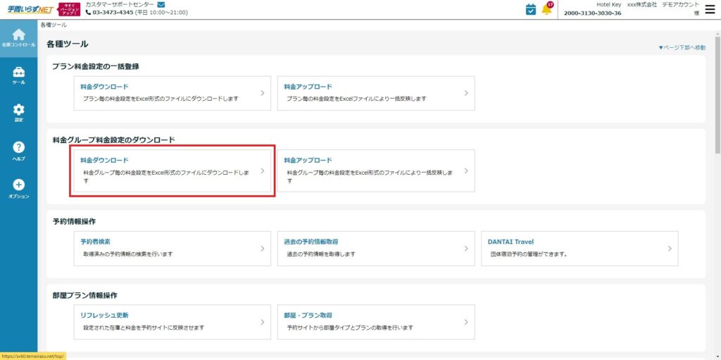 ①ツール>各種ツール>「料金グループ料金設定のダウンロード」 をクリックします。