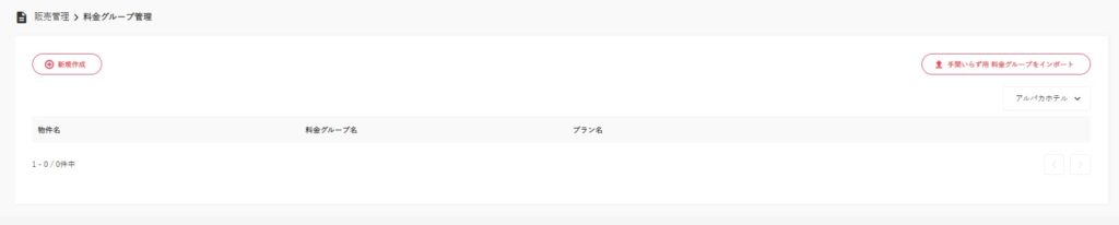 まずはじめに【料金グループ管理】にて、「⊕新規作成」をクリックをして【料金グループ詳細】を開きます。