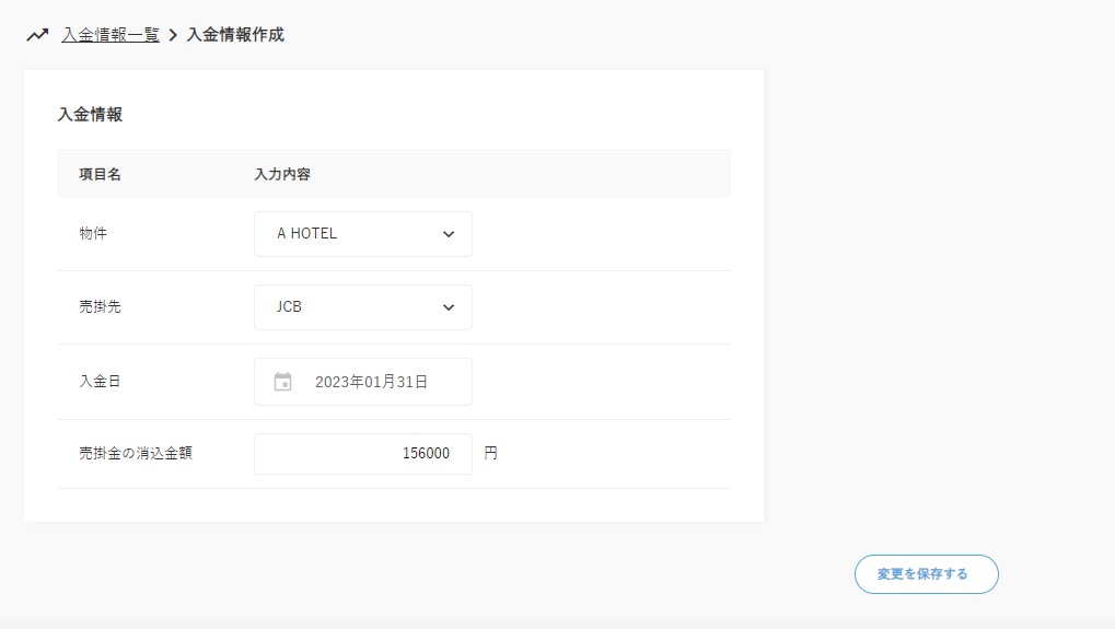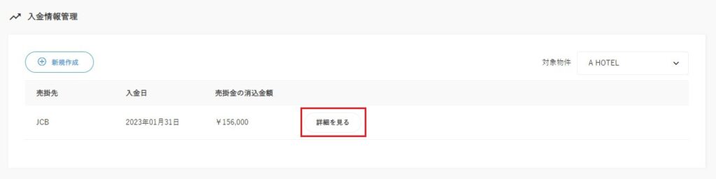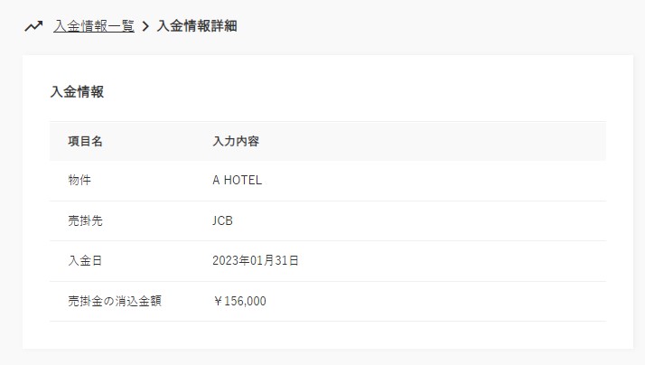 一度登録した入金情報は、入金情報管理に一覧で表示されます。