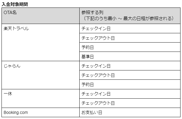 入金対象期間 :入金の対象となる売掛金の起算日が含まれる期間を選択してください。