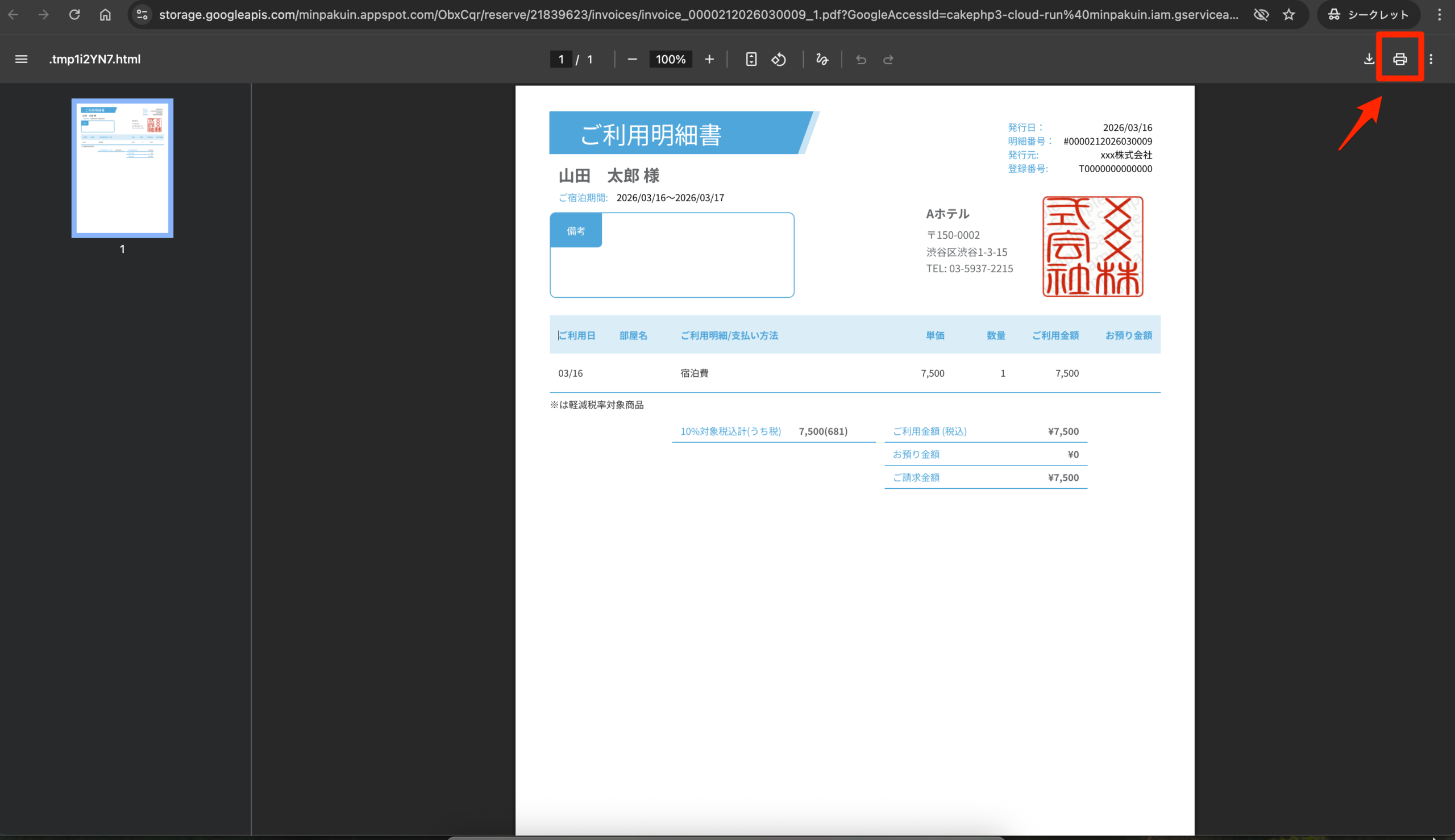 ③「発行する」ボタンを押して作成完了(別タブでPDFが開きます)