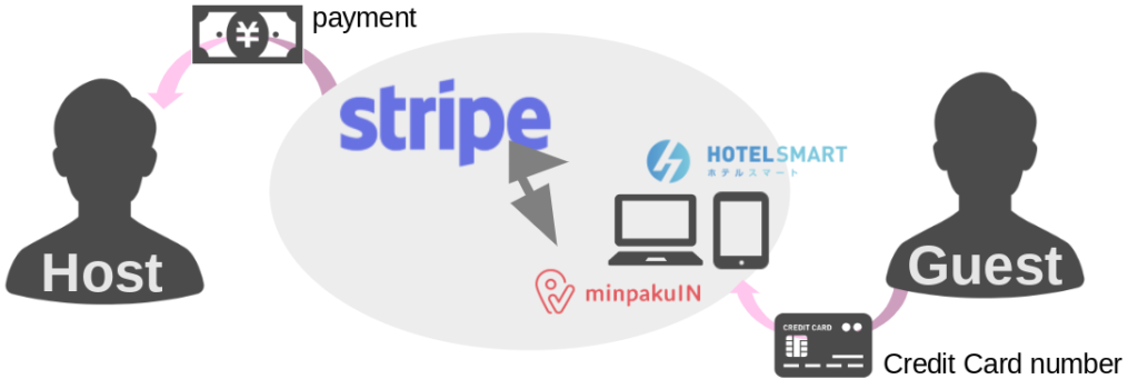 ③Stripeからホストに決済金額から手数料が引かれた金額が支払われる
