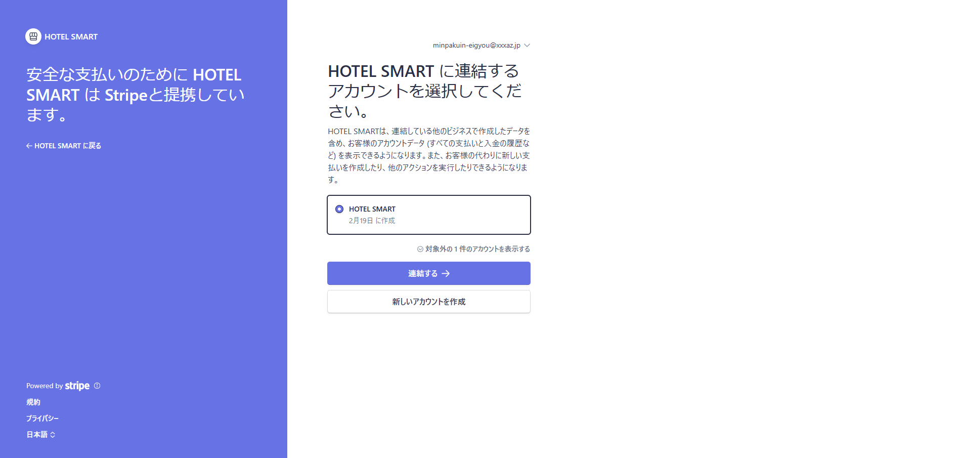 決済代行サービスStripeと連携することで、マイページやタブレット上で宿泊料金やオプション商品の決済をしていただけます。