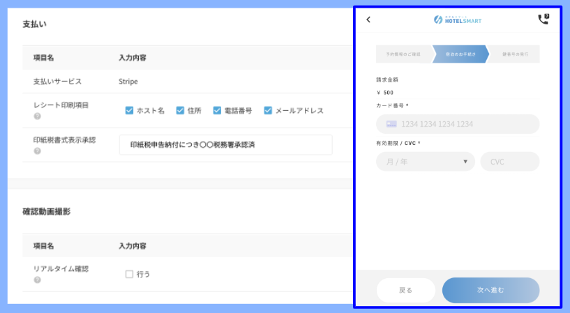 初期値は旅館業法に基づいてい「氏名」「住所」「国籍」「連絡先(電話番号・メールアドレス)」「パスポート写真」)を登録いただく設定となっております。