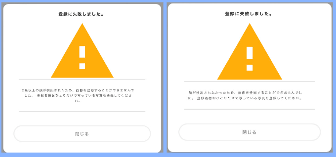 顔が映っていない場合は、撮影/アップロードが完了しません。