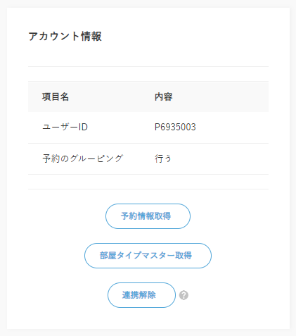 ③アカウントの連携が完了したら「部屋タイプマスター取得」ボタンを押して、部屋タイプと予約経路を取得する