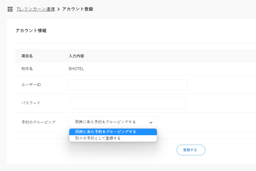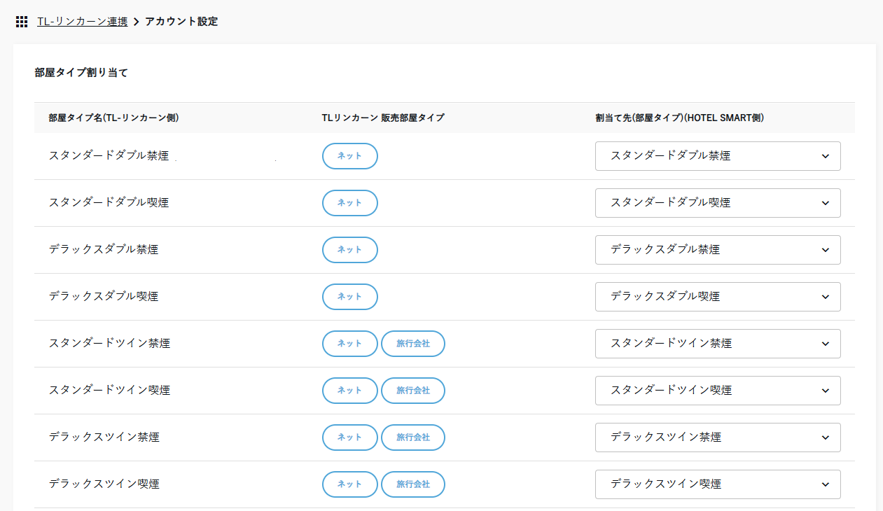 TLリンカーンから部屋タイプと予約経路の情報を取り込む作業が必要になります。