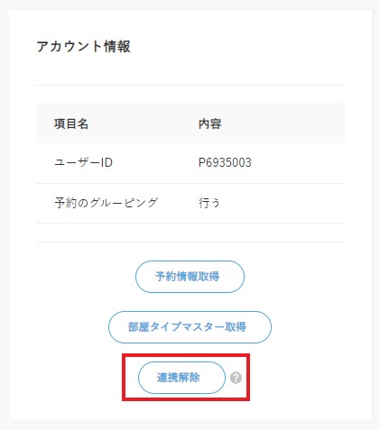 ⑤部屋タイプと予約ルートの取り込みが完了したら、「連携解除」ボタンを押す