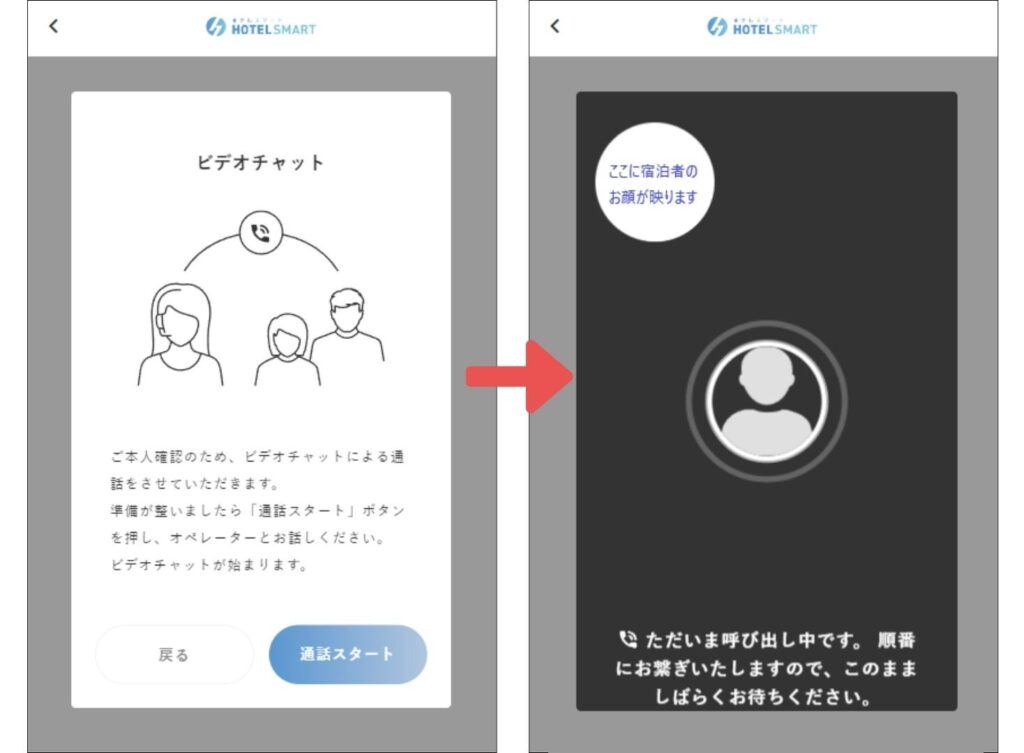ビデオチャットは宿泊者情報の登録後(チェックイン完了前)に行われます。